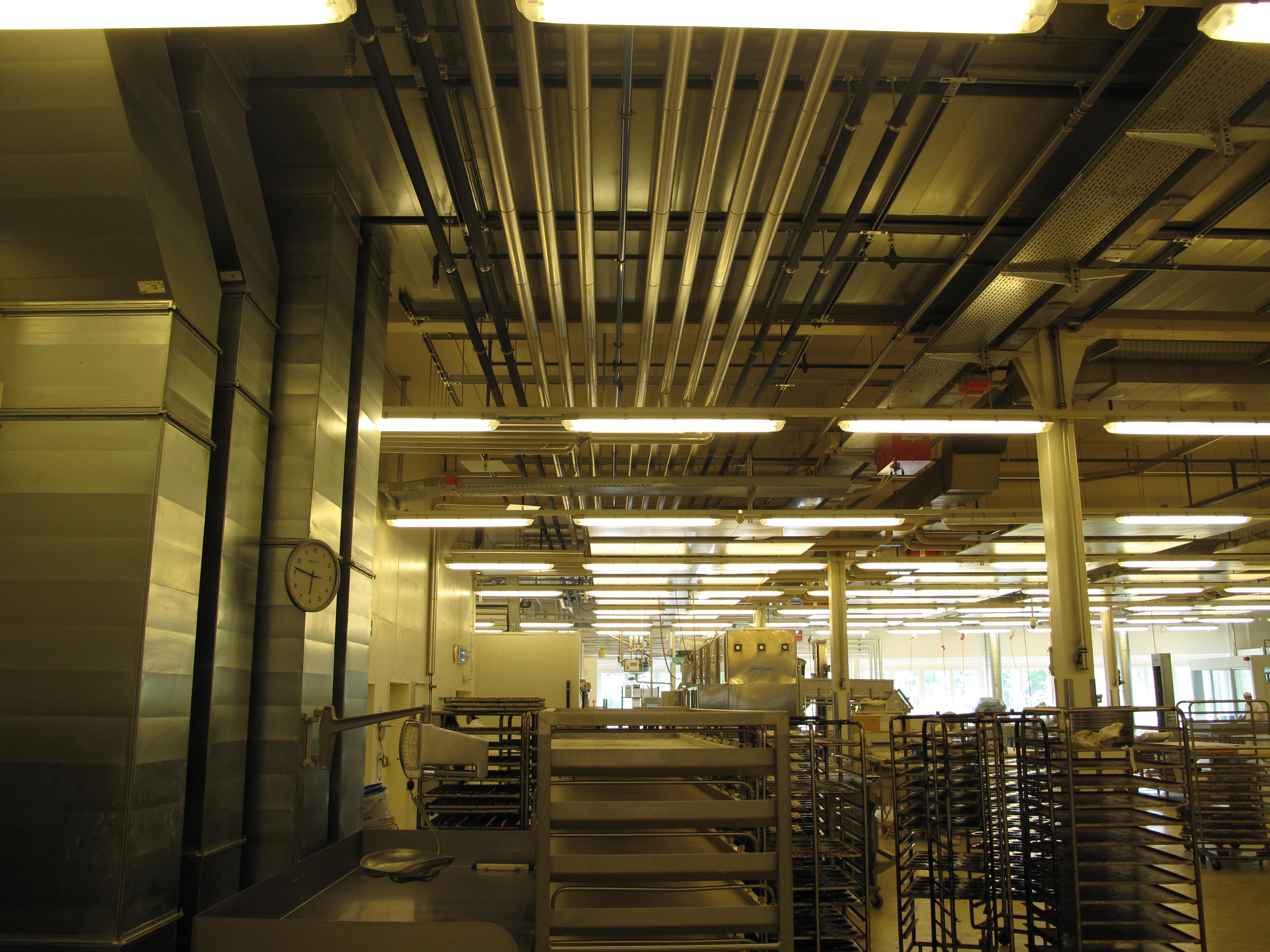 Industriegebäude aus Beton mit hinterlüfteter Fassade, Kunststofffenstern, Thermoöl-Etagenöfen sowie Stikkenöfen (elektrisch und Gas). Luftkühldecken im gesamten Gebäude. Produktionsflächen, Spedition, Kühl- und Tiefkühlanlagen, Schockfroster, Gärräume, Sandwicheria, Lager und Reinigung, Intelligentes Haussystem Spline, Büros, Kantine, Verkaufsladen, Sozialräume usw., inklusive neuer und bestehender Maschinen- und Apparatepark.