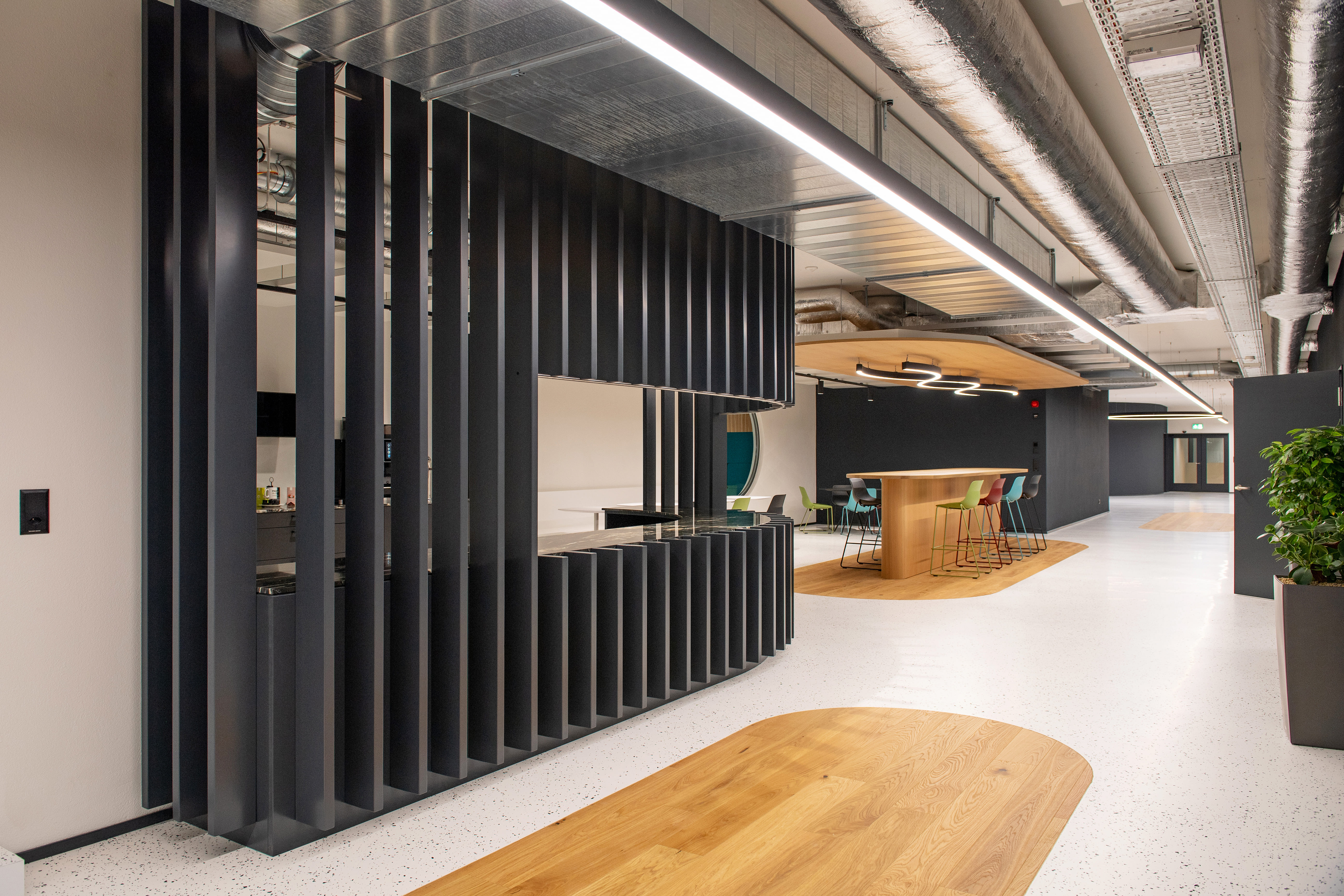 Innenarchitektur im Bereich Büro und Industrie umfasst für uns funktionale und durchdachte Lösungen für Arbeits- und Produktionsräume. Die gezeigten Projekte reichen von Umbauten und Erweiterungen bis hin zu gezielten Eingriffen im Innenausbau. Im Fokus stehen effiziente Abläufe, klare Strukturen und eine hochwertige Gestaltung der Arbeitsumgebung. Die Auswahl zeigt beispielhafte Arbeiten und wird laufend ergänzt.
