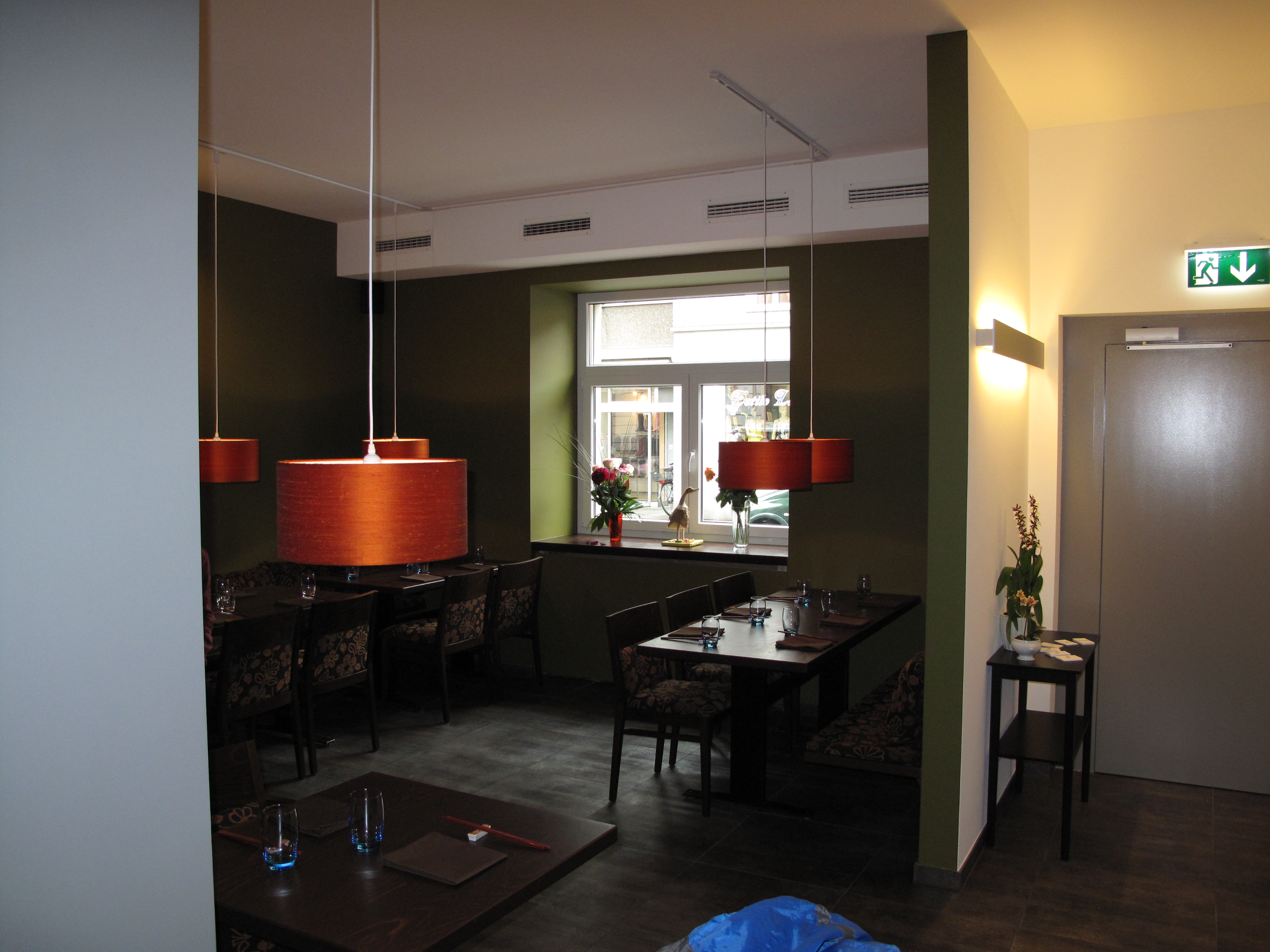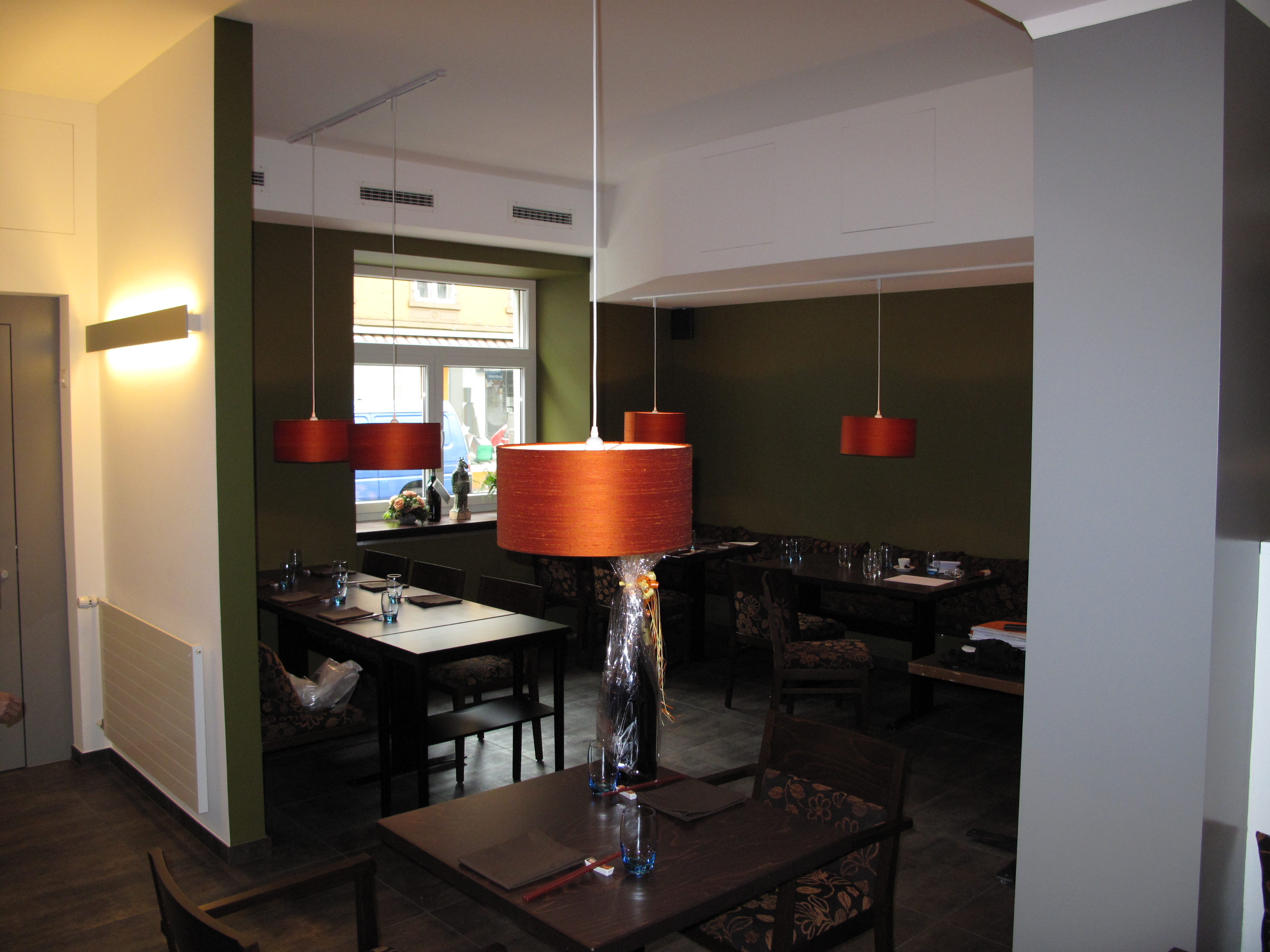Neuer Bodenbelag und neue Wandgestaltung, Buffet und neue Möblierung, neue Beleuchtung.