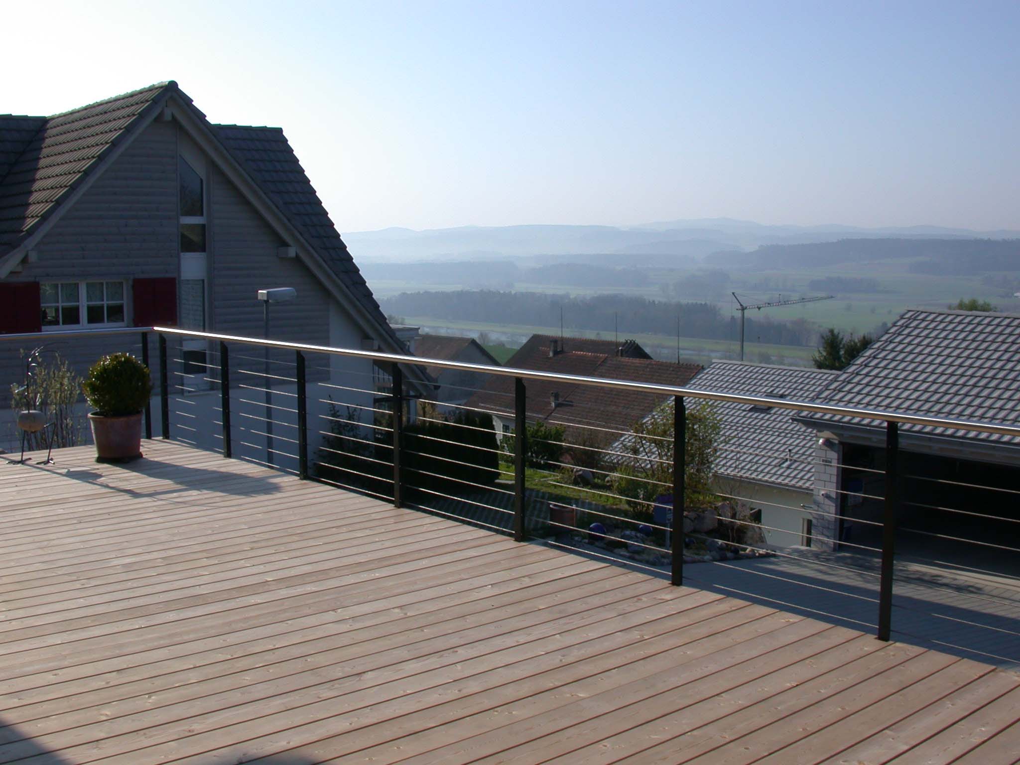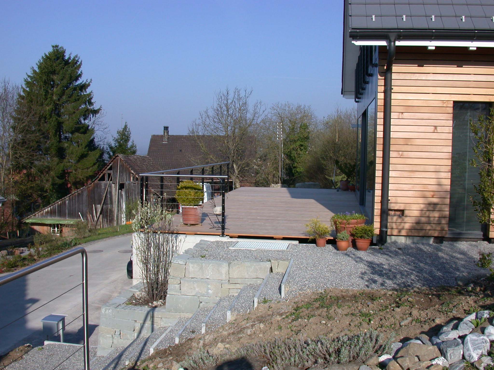 Heizsystem: Luft-Wasser-Wärmepumpe. Tunnel-Cheminée. Holz-Metallfenster.