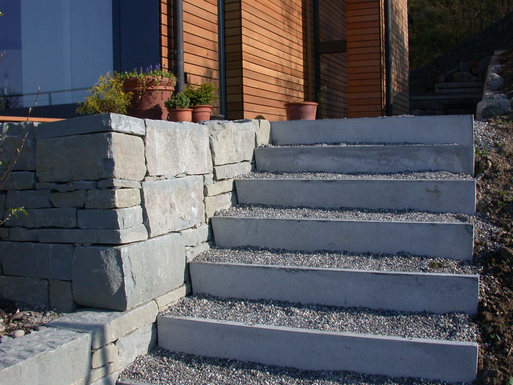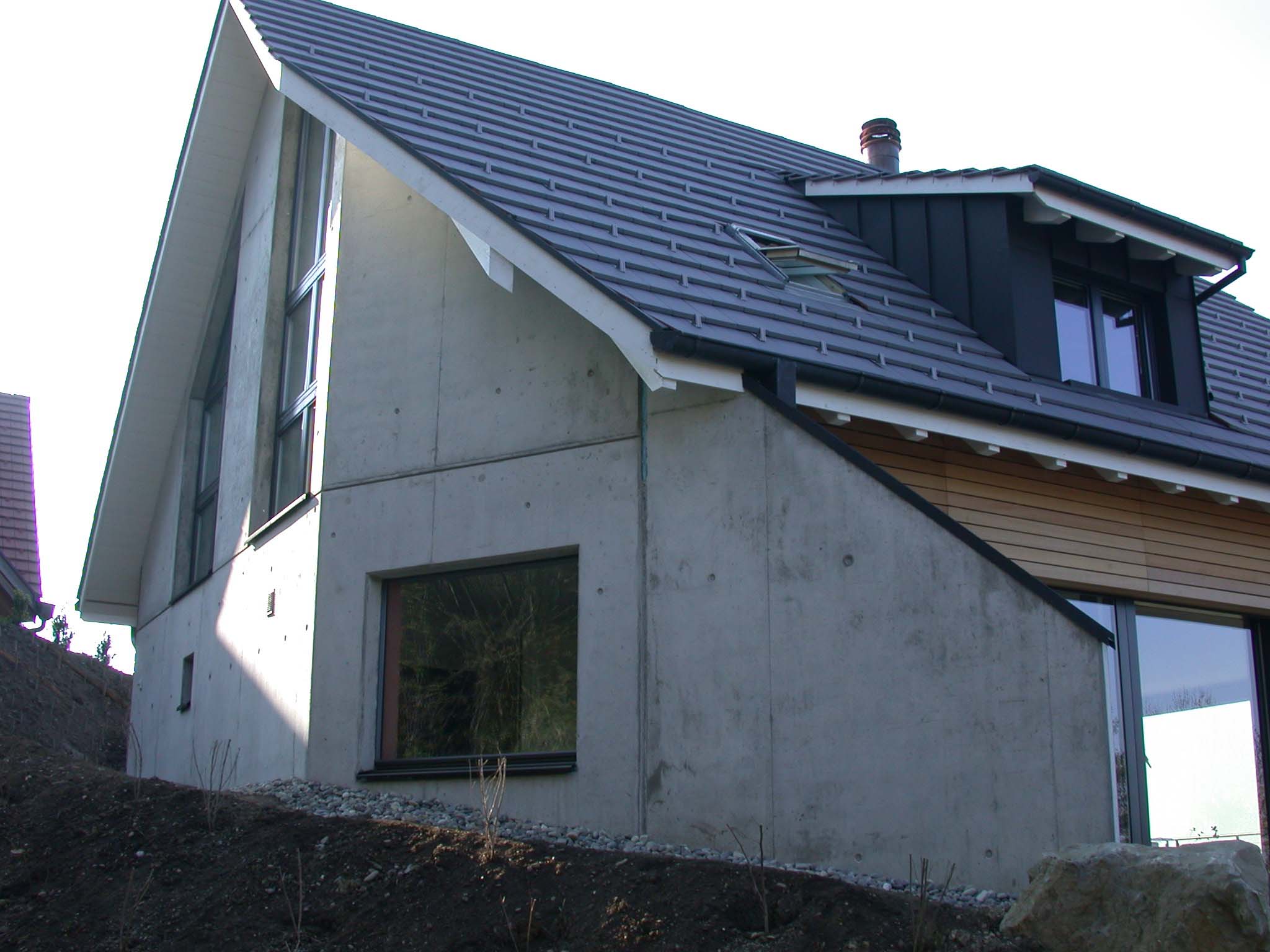 Einsteinmauerwerk aus Bricosol, Sichtbeton Nordseite. Zweischalenmauerwerk mit Sichtbeton.