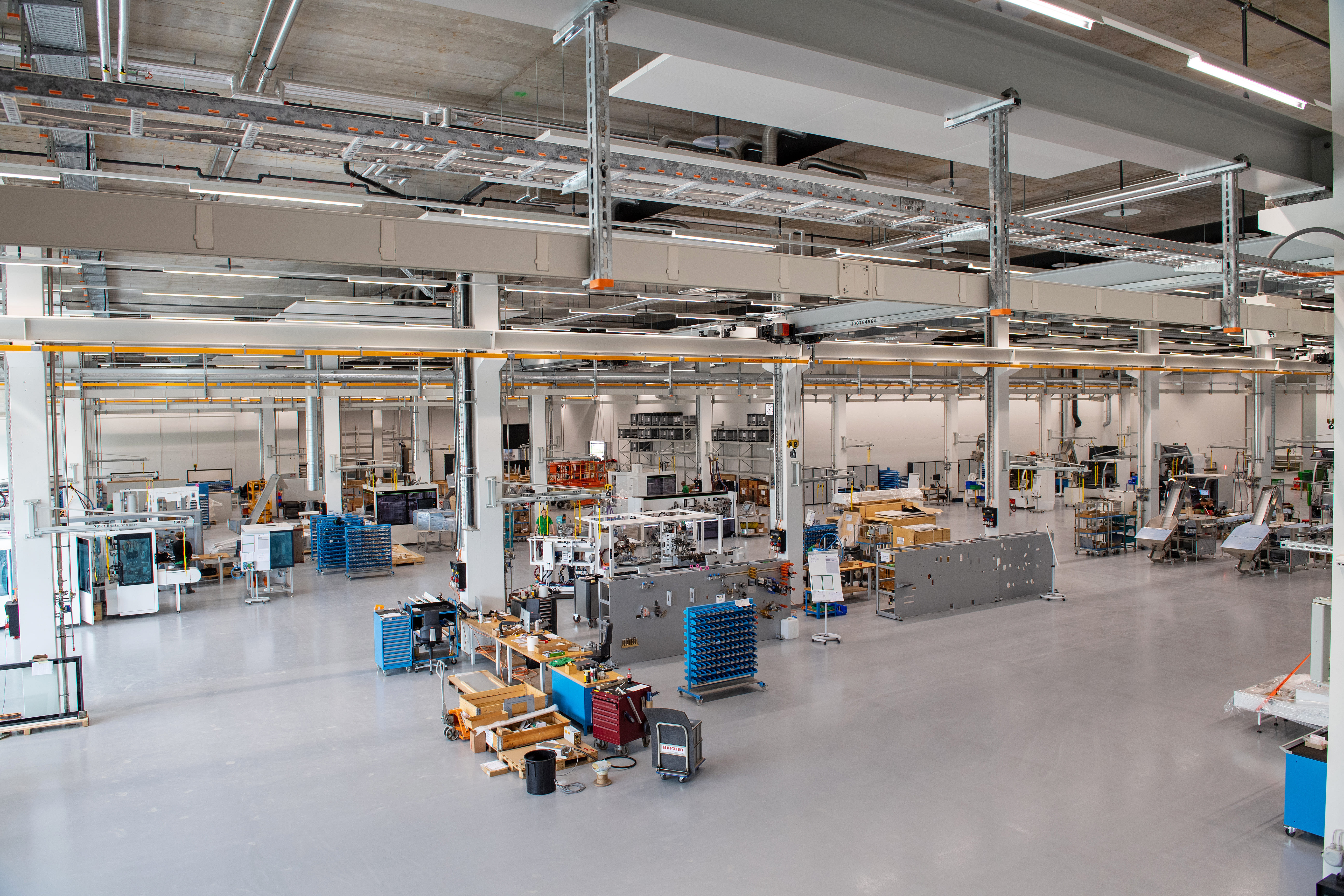 Produktionsflächen, Werkstatt, Labor, Elektrolabor, 2 Lounges, Empfang, Palettenlager 1'000 Stück.